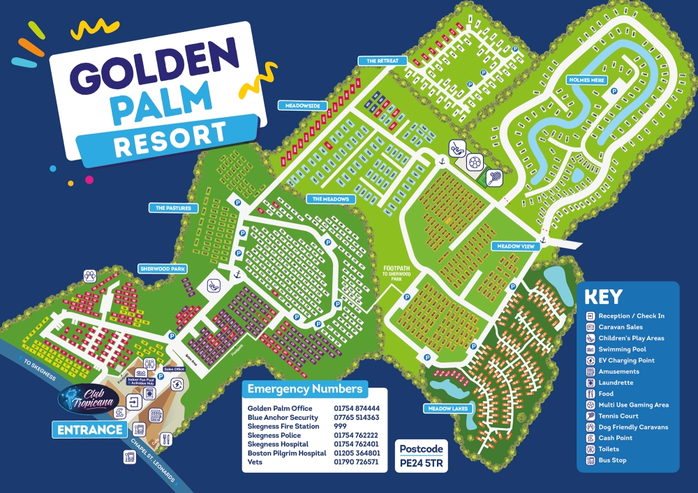 Golden Palm Resort has everything you need for your holiday, play parks, swimming pool, club, pub, take aways, shops, laundrette and crazy golf.